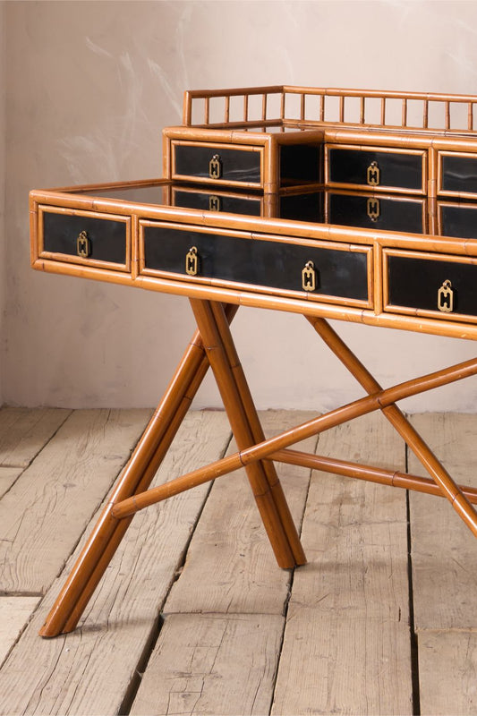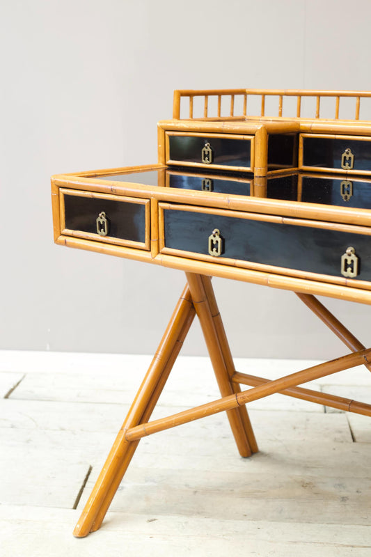 20th century Bamboo and black lacquer desk by E Murio
