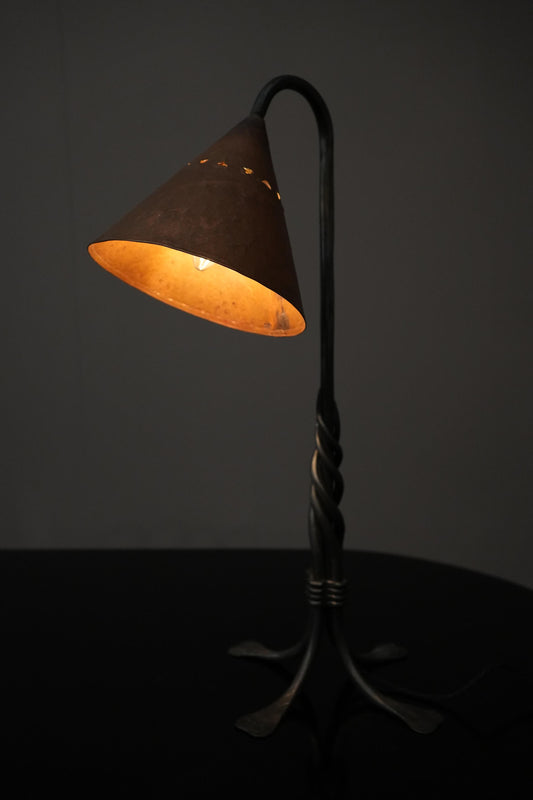 20th century French brutalist copper and iron lamp