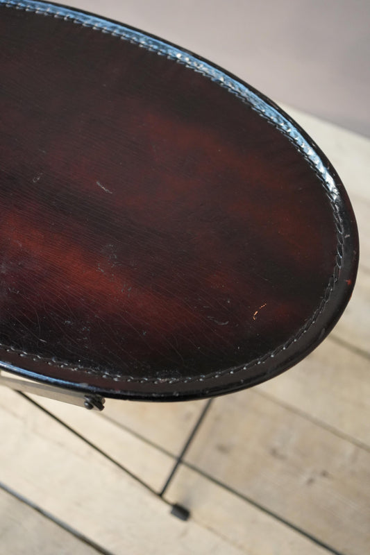 20th century leather and metal folding drinks table