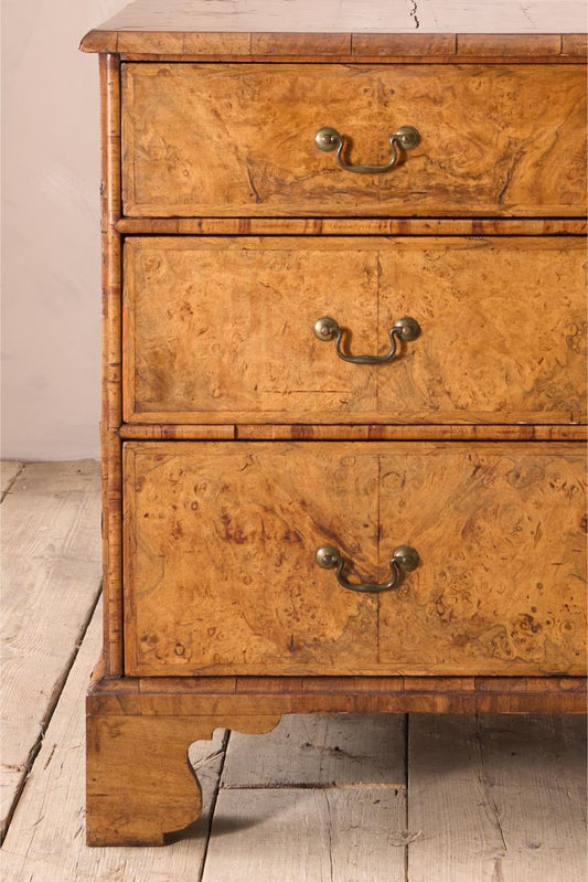 c.1720 English Georgian burr walnut chest of drawers
