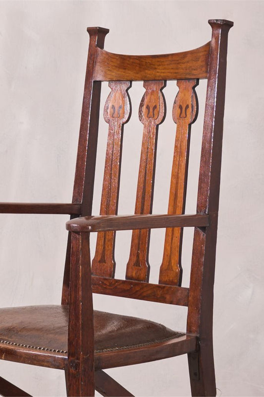 Arts and crafts oak and leather desk chair