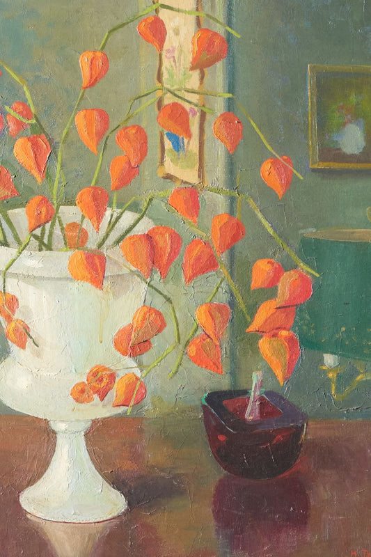 Large 20th century painting of Physalis