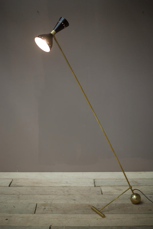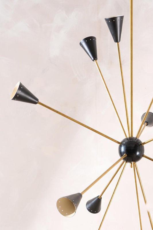 Mid century Brass and Black Italian pendant light by Stilnovo