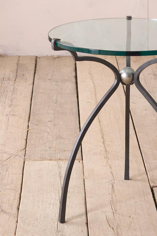 Mid 20th century glass and iron side table by Peter Ghyczy