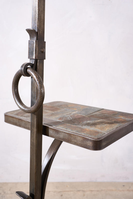 Mid century Brutalist French floor lamp with slate table by Jean-Pierre Ryckaert