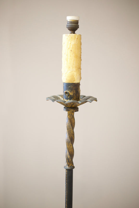 Mid century Spanish gilt metal and leather floor lamp
