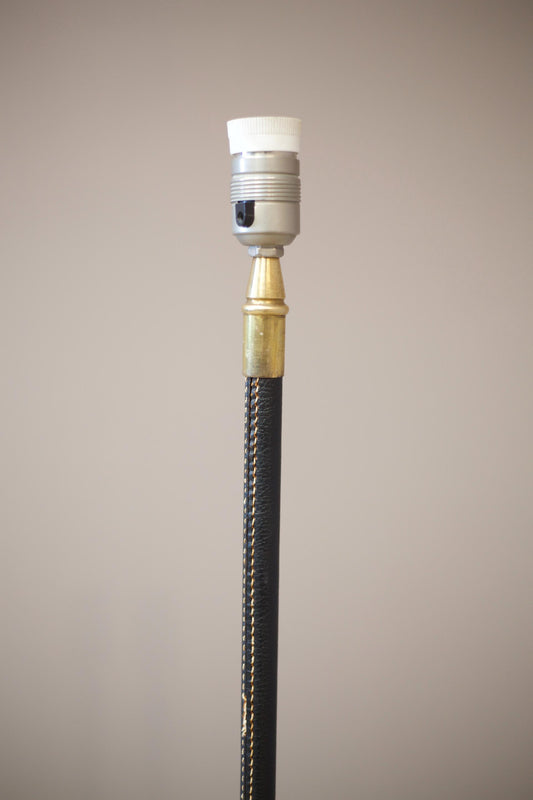 Mid century Spanish brass and black leather floor lamp
