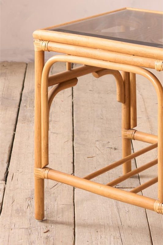 Mid Century Smoked Glass Top Bamboo Side Table