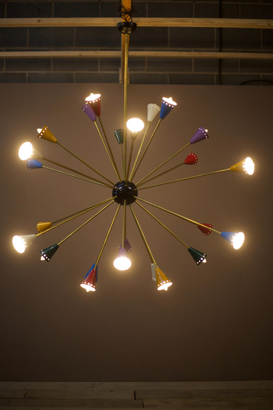 Mid century Italian brass and coloured Atomic light