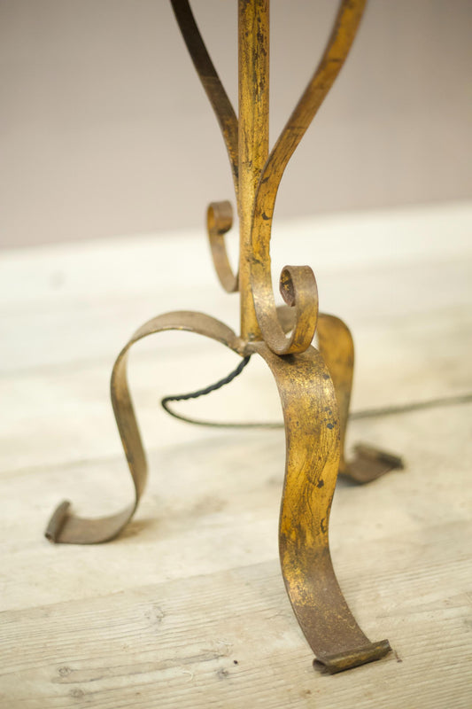 Mid century Spanish gilt metal floor lamp with table