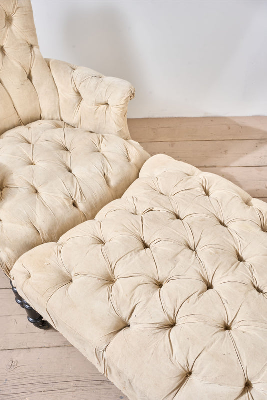 Rare Napoleon III pair of Buttoned back and seat armchairs with matching stool