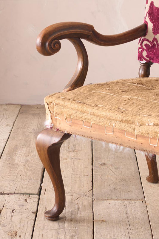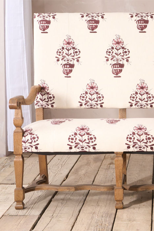 19th century French oak bench upholstered in Vaas by Emma Grant