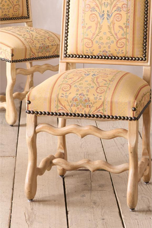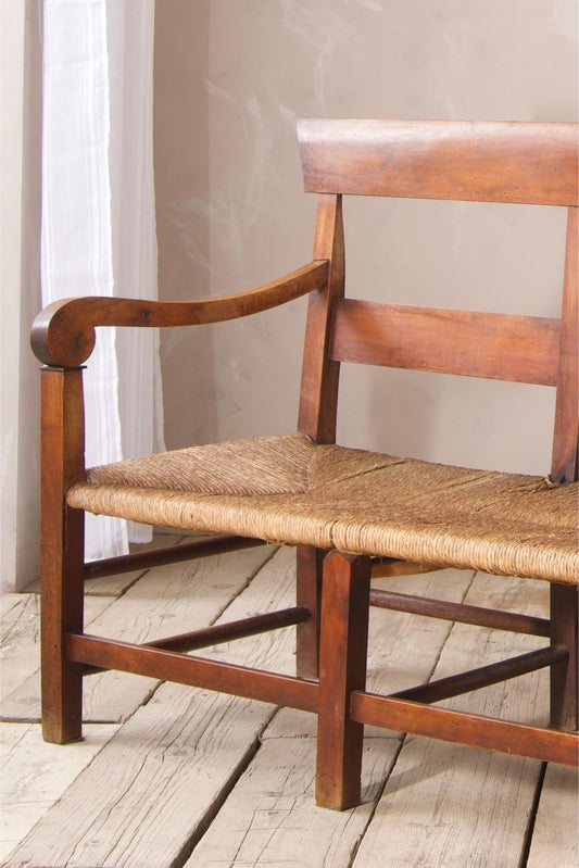 19th century French oak bench upholstered in Vaas by Emma Grant