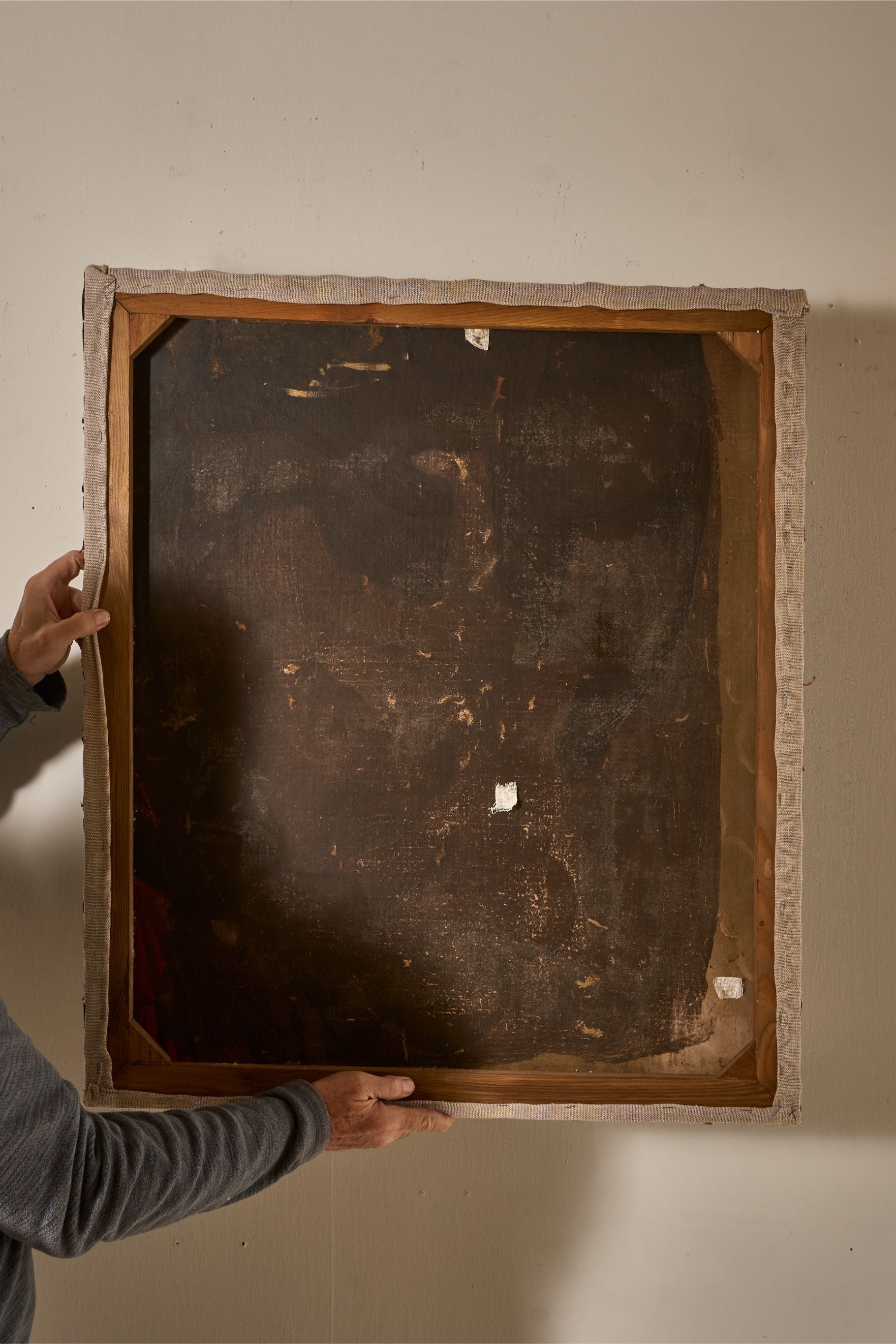 The overall condition is very good and the quality is unquestionable. The piece has been re stretchered well for the preservation of the canvas. Lovely size as well.