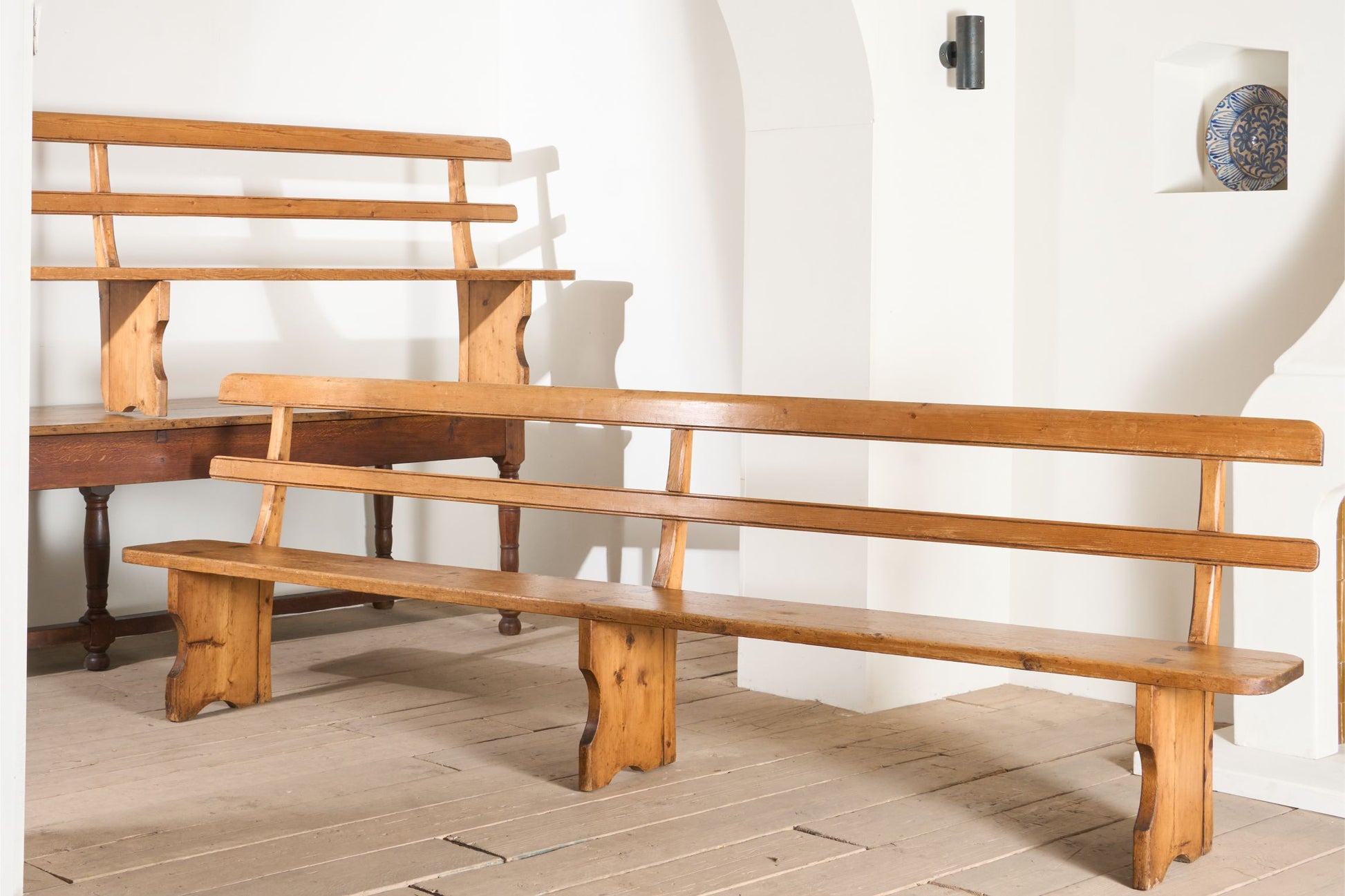 3.1m Pair of 19th century Pine benches