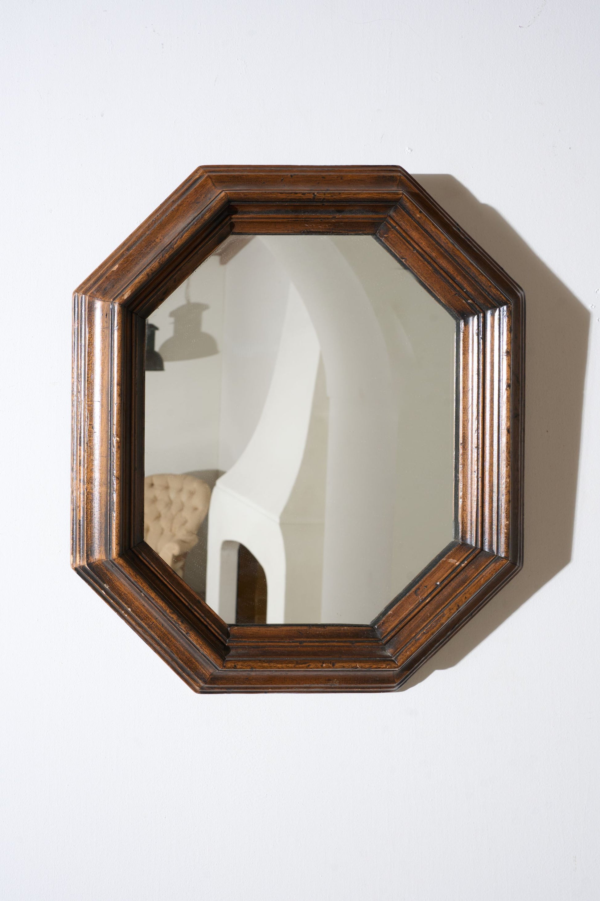 This is a very clean conditioned all original oak wall mirror. The moulded frame is a very attractive design with nice patina. The octagonal shape makes this an interesting feature to a wall as well.
