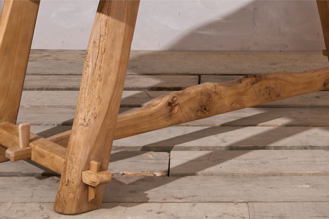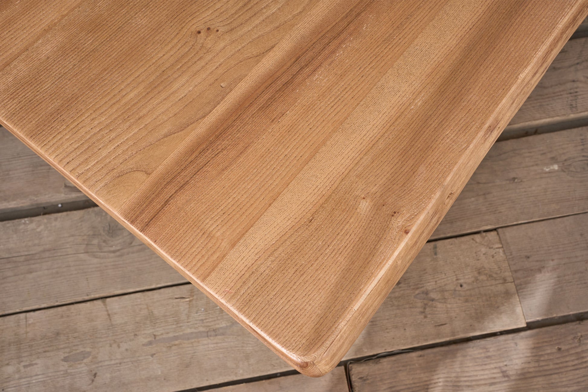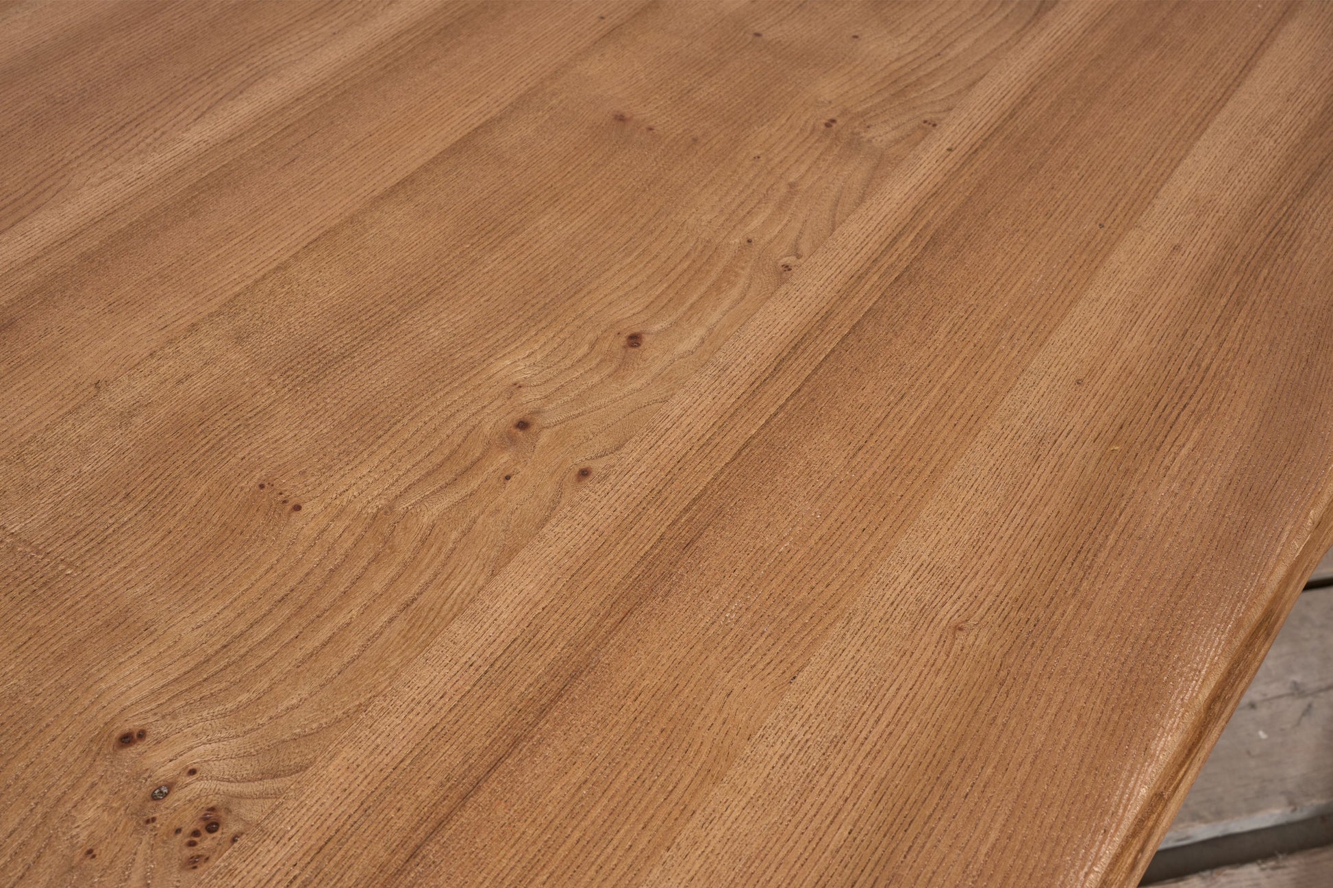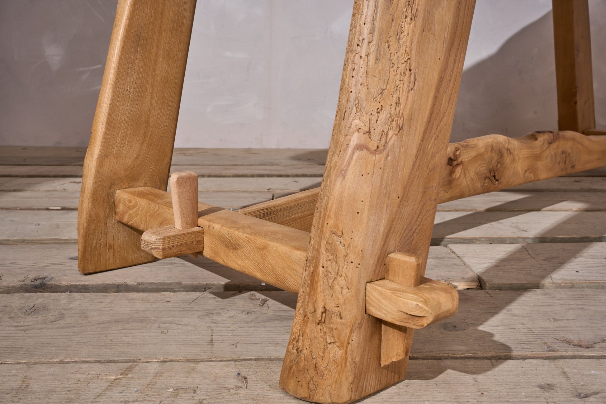This is a very smart 20th century waney edged dining table made from elm. Wonderful figuring to the wood and naturalistic elements that make this hugely decorative. Finished in a clear oil to help protect the wood from everyday life