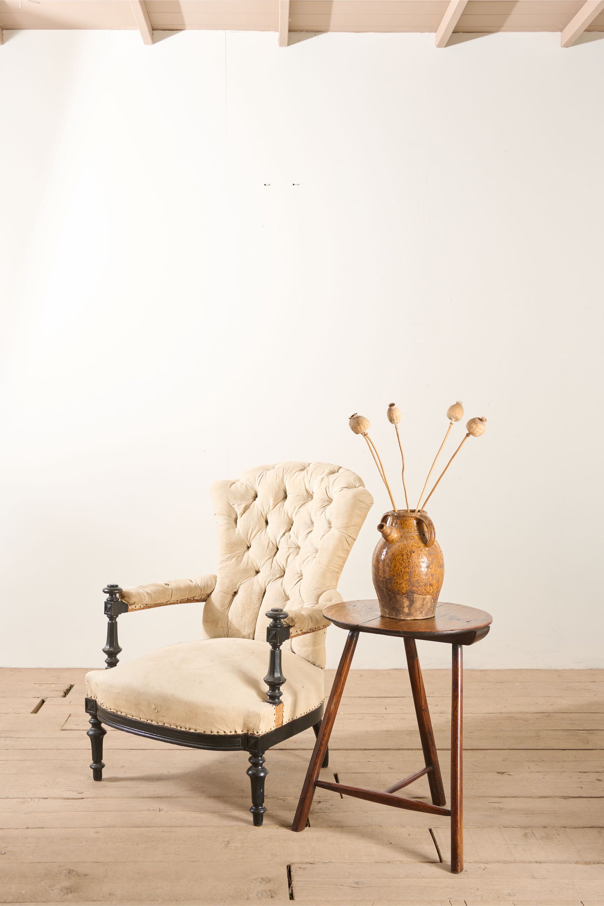 This is a very nice, folky elm and ash 18th century cricket table. The condition is excellent with plenty of character and charm. Totally original and the rustic design and simplicity makes it ideal for a huge variety of interiors.