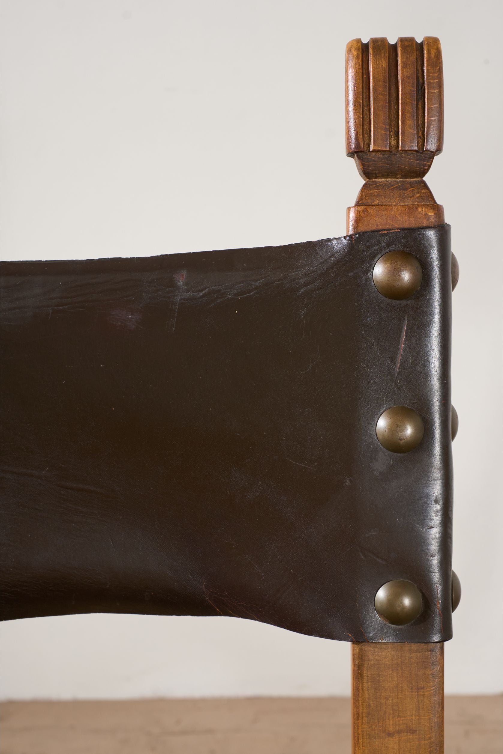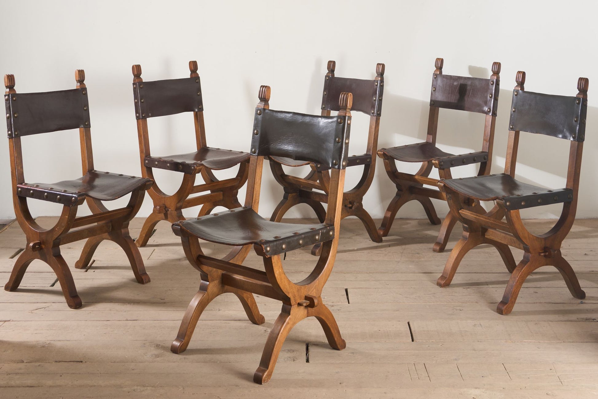 Set of 6 Mid 20th century Spanish walnut and leather dining chairs