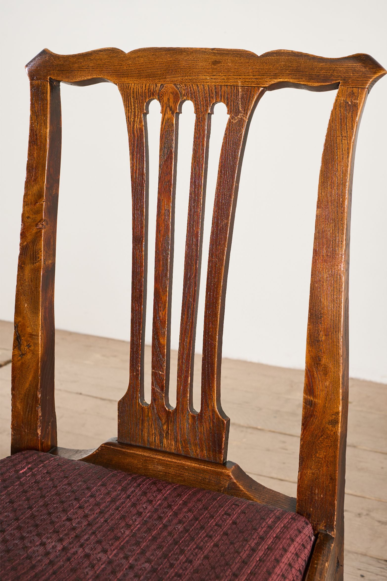 These are a fabulous set of 9 18th century Oak and Elm country dining chairs from a convent in Yorkshire. The quality of the chairs is very high and each one has plenty of character. Condition is also very good with each one remaining solid. The seat cushion is upholstered in woven horse hair material, a rare survivor with only one chair having a small hole. There are signs of old repairs but again all solid and just add to the charm of the set. There are 2 chairs that are very slightly different to the rest but clearly the same maker with the back shapes matching. The colour aswell is perfect and has aged perfectly.